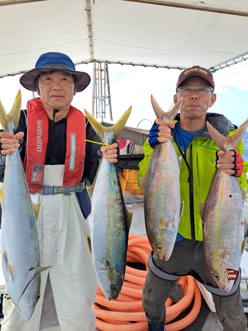 10月1日、イワシの落とし込みに出港、ヒラマサ、5kg~4kg、カンパチ、3kg、ブリ3kg~2kg、他にタイなど釣り上げました。